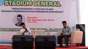 Stadium general diisi langsung oleh Ketua Lembaga Perguruan Tinggi Nahdlatul Ulama (LPTNU) Prof. Ainun Naim, Ph. D, M. B. A. Di dalam menyampaikan materi, Prof. Ainun Naim mengkaitkan tema dengan perkembangan teknologi terkini.