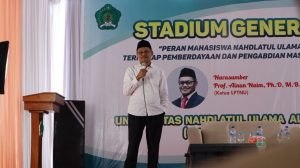 Stadium general tahun ini mengangkat tema “Peran Mahasiswa Nahdlatul Ulama Terhadap Pemberdayaan dan Pengabdian Masyarakat.” Sedikitnya 479 mahasiswa memenuhi ruang stadium general di kampus. Sedangkan ada 300 lebih mahasiswa lainnya yang menyimak kegiatan lewat zoom meeting.